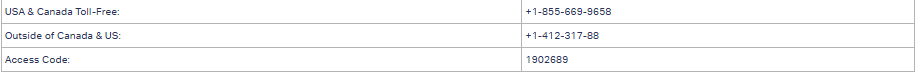 Participants should dial-in at least 15 minutes prior to the start of the call to ensure placement in the conference on time.