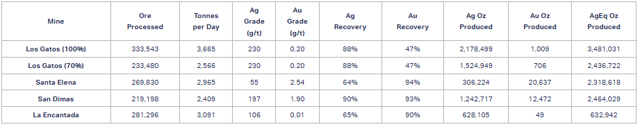 2. Los Gatos: Management is increasing the Los Gatos attributable production forecast to 9.1 – 9.7 million AgEq ounces, an increase of 6% (mid-point) compared to the original guidance. The revision is primarily driven by higher throughput rates and slightly improved silver grades, with a long-term objective of achieving and sustaining a throughput level of 4,000 tpd.